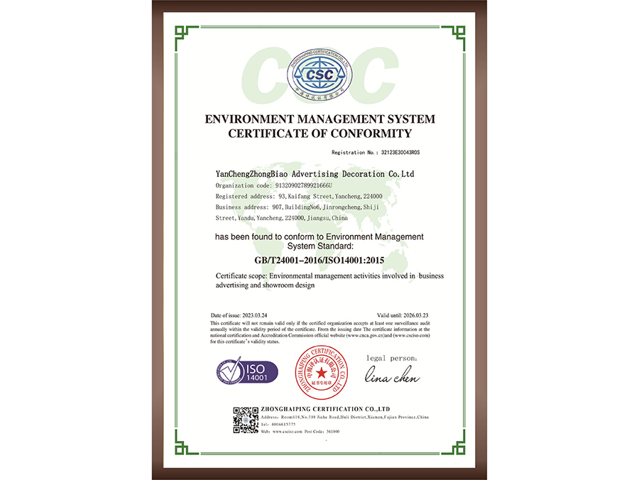 環(huán)境管理體系認(rèn)證證書